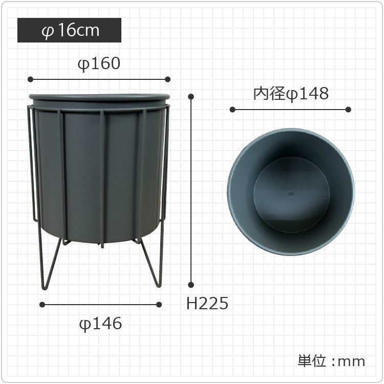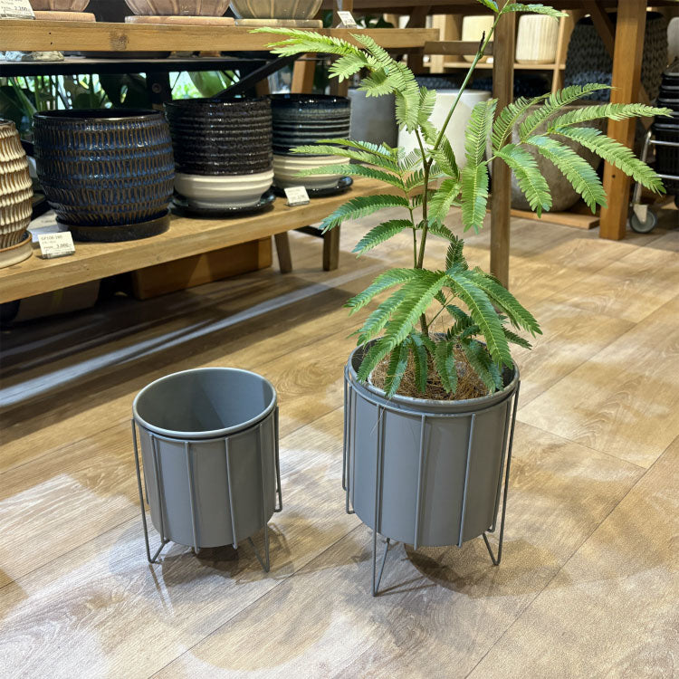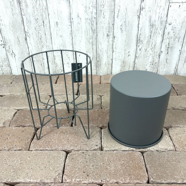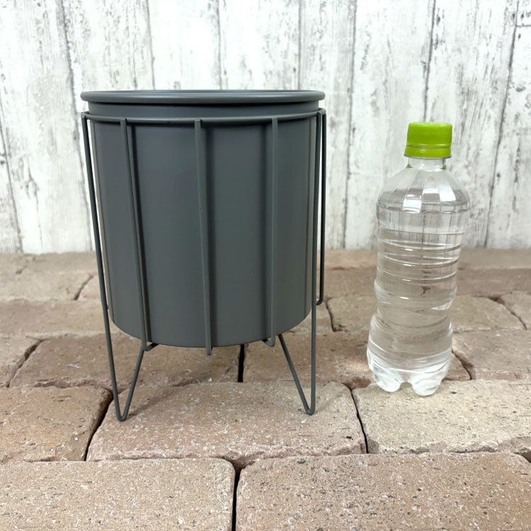 アイアン製のポットとスタンドのセット。きれいなグレーでインダストリアルな雰囲気を感じます。