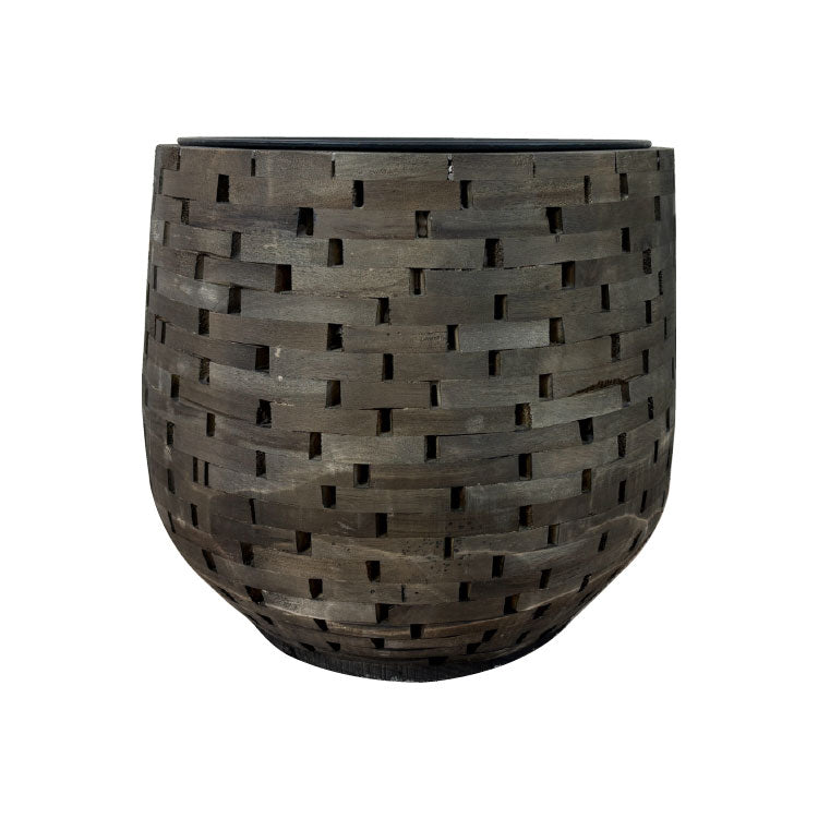 細かな木をハンドメイドで組み合わせたモザイクウッドポット。 職人の手で一つ一つ作られており、マシンメイドでは表現できない木の形や濃淡の温かみが特徴です。