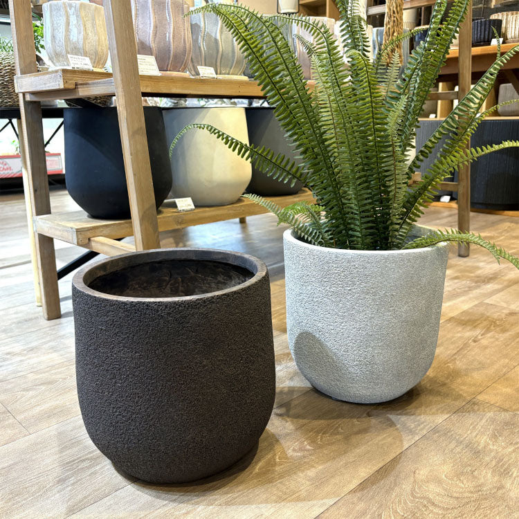本製品は耐候性に優れていますが、寒冷地でご使用の際は「凍て(凍結による膨張)」にご注意ください。 鉢内の水分が凍結・膨張することで、破損の原因となる場合があります。冬季は水はけを良くする、あるいは軒下や屋内へ移動させるなどの対策をおすすめいたします。