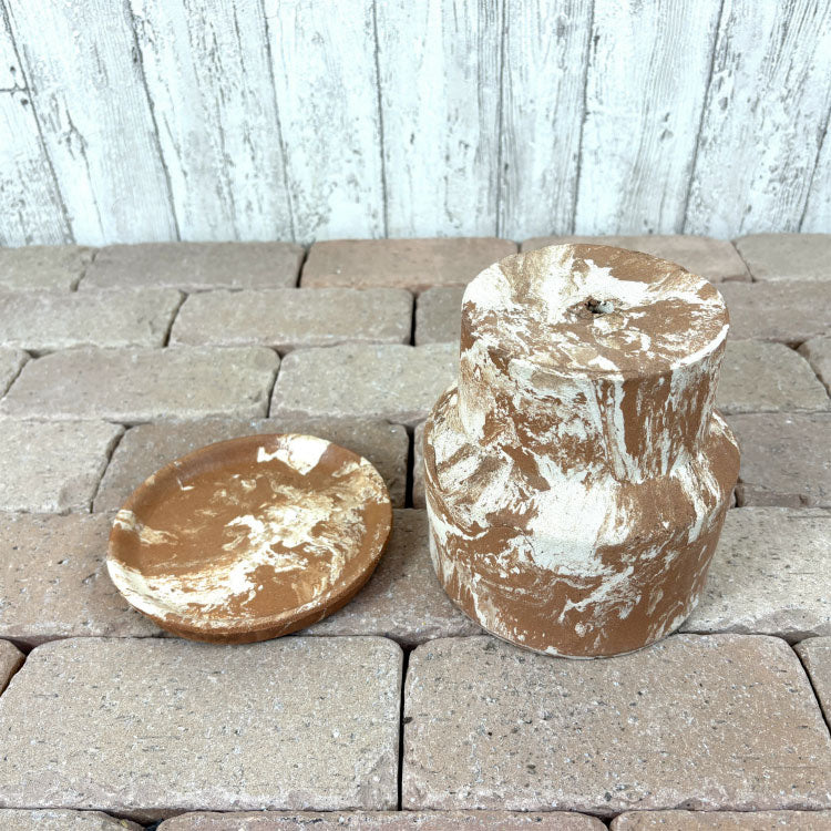 ● 岩肌を表現したアイテムとなります。写真の通り口周り、底部、受け皿の縁部分は削り出したようなカケがございます。