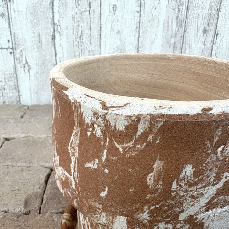 大きな石から削り出して作られたような見た目が特徴的な植木鉢。肉厚でずっしりと重みがあり高級感のある仕上がりです。