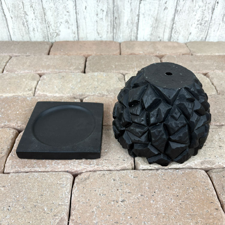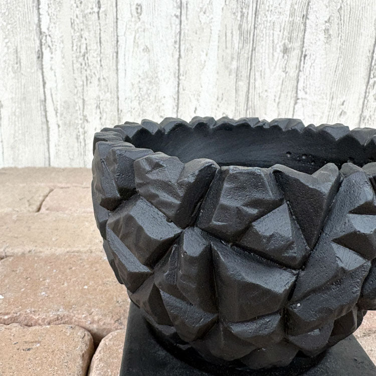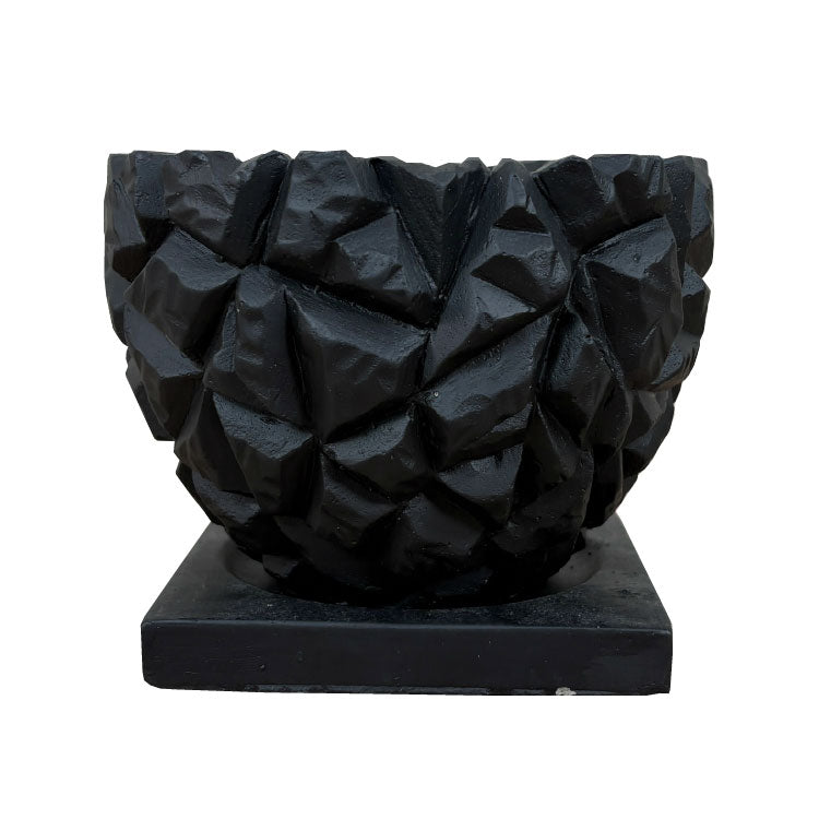 カラーは溶岩のようなマットなブラック。 開口部まで抜け目のないごつごつ感、いびつな形をしております。非常にデザイン的でラフなつくりとなっております。