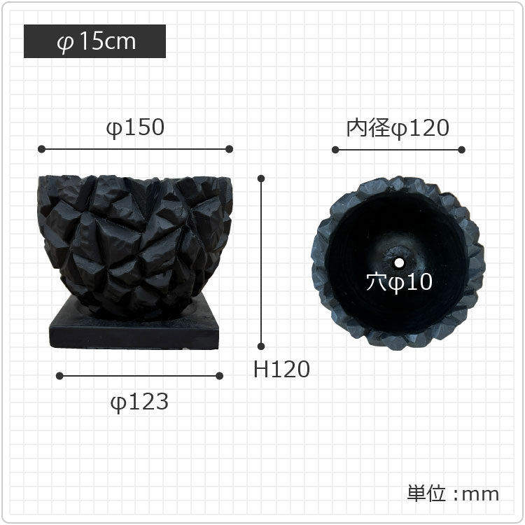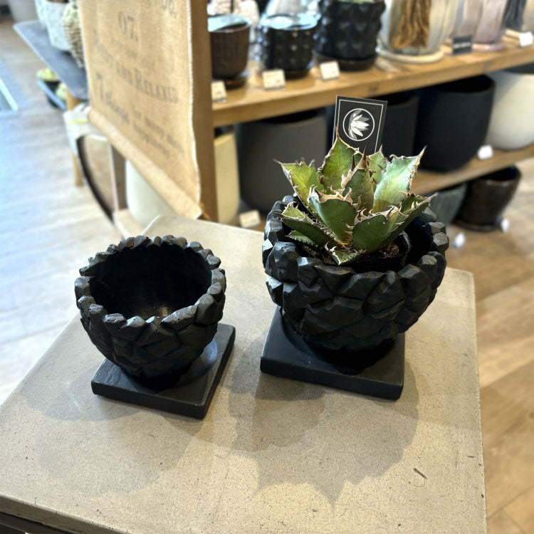 ごつごつとした岩のような形をした植木鉢。小さいながらも個性的で存在感があります。しかしながら全体的に丸みを帯びていて肉厚。何とも憎めない、とても愛らしい雰囲気の植木鉢です。