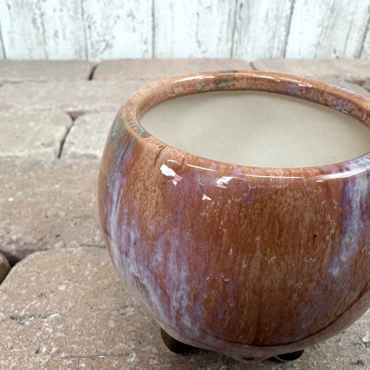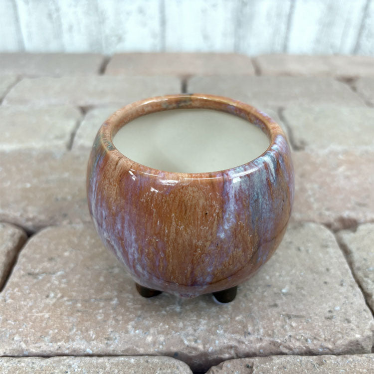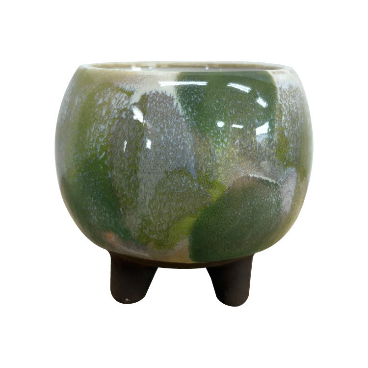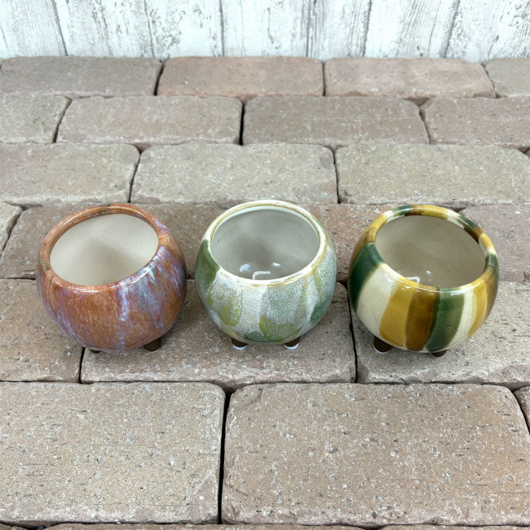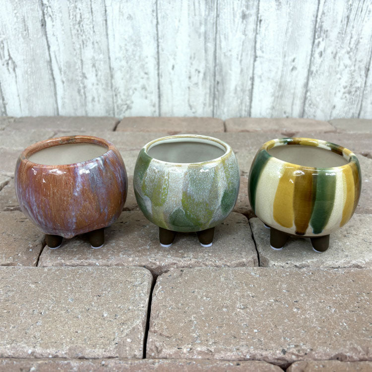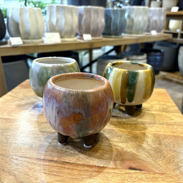 コロンと可愛い球体型に4本の脚をくっつけた植木鉢。ピンク、グリーン、ベージュの3つのカラーをご用意しました。多肉やサボテンなど小さいサイズの植物からの植え替えやフェイクグリーンにもおすすめです。