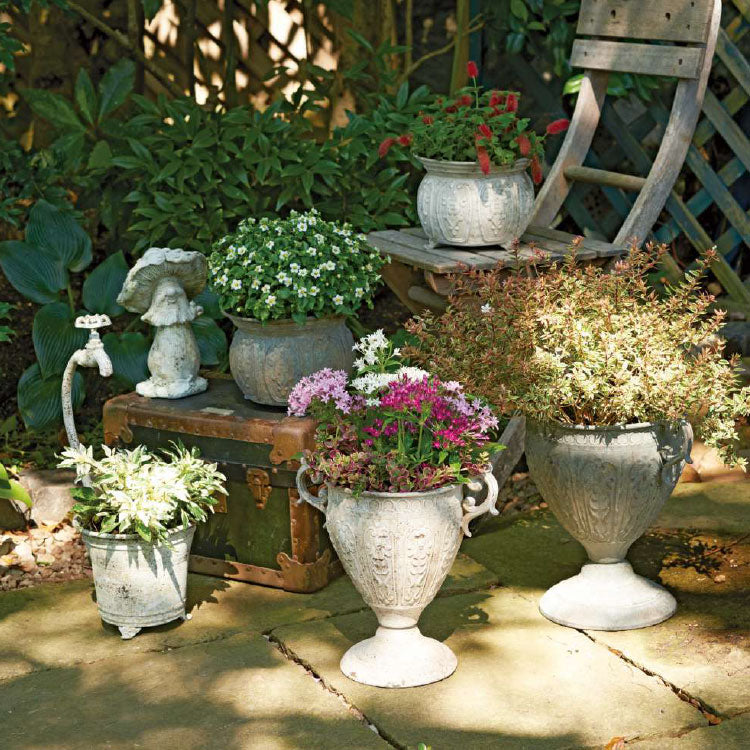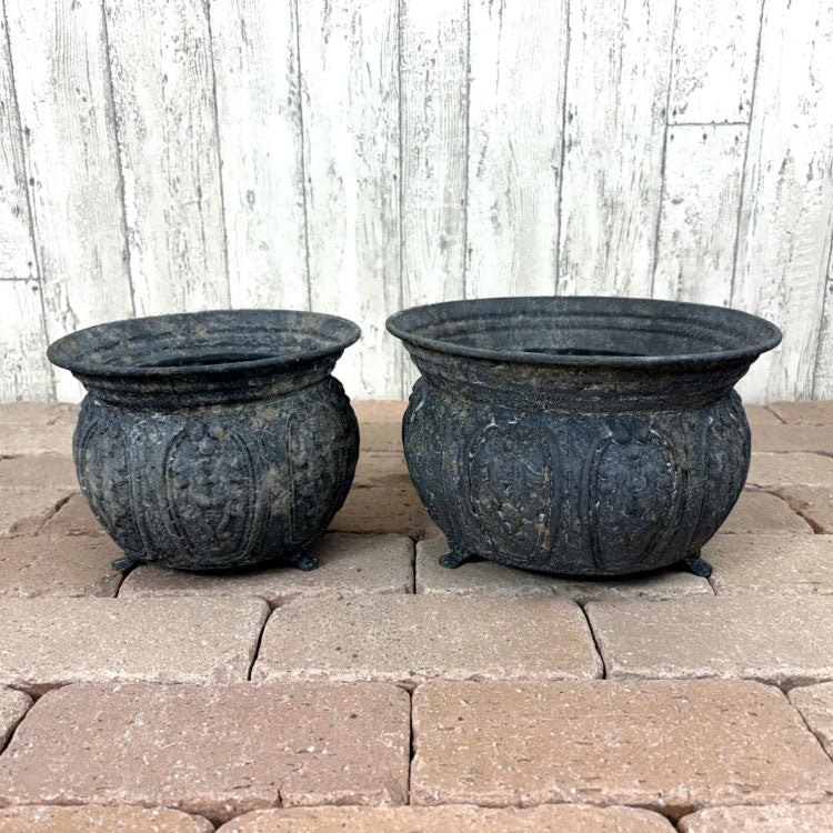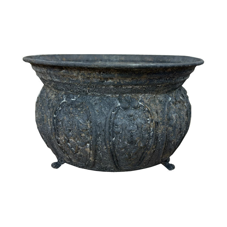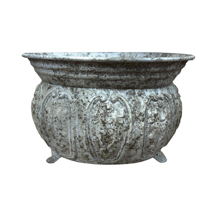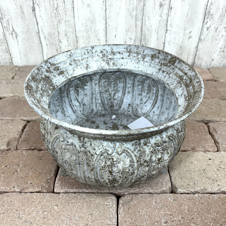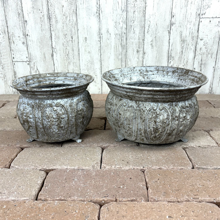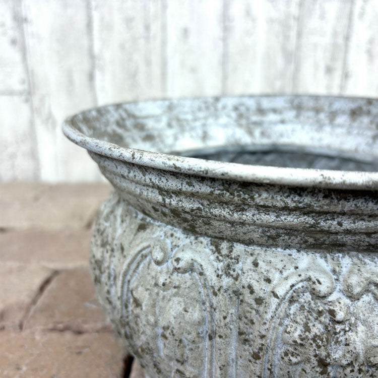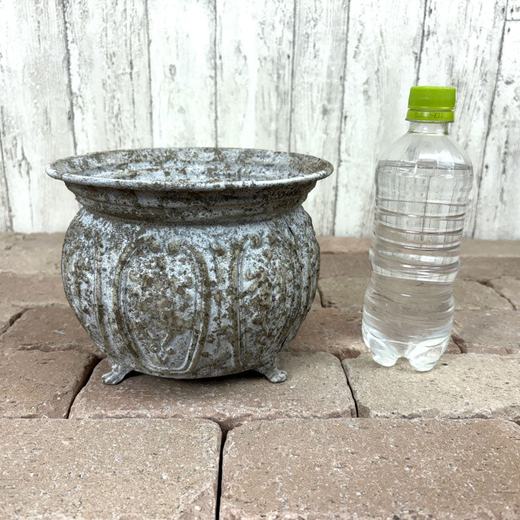 使い古したかのようなアンティークな質感を表現したブリキポット。ヨーロピアン調のデザインで季節の寄せ植えにオススメの一品です。