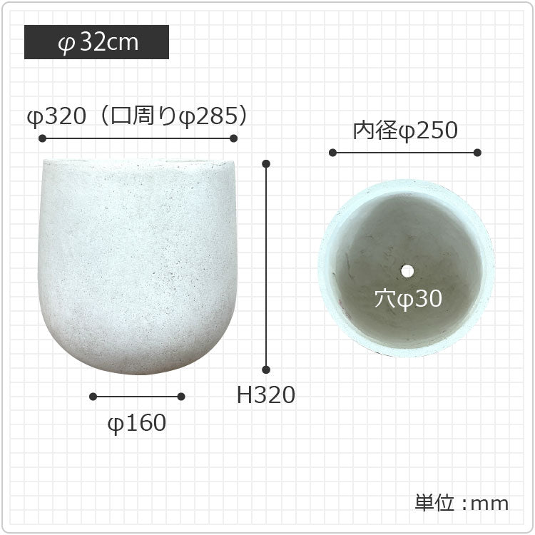 グラスファイバーをベースに成形された軽くて丈夫な植木鉢。長い年月をかけてできた天然石の様な風合いをコンクリートで表現。ぽつぽつと開いた気泡穴が特徴です。