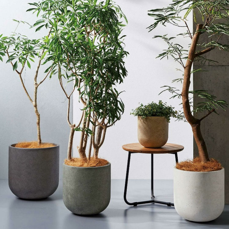 マットなコンクリート調の質感。表面はラフに拭きあげられたようなウォッシュ加工がされています。ニュアンスカラーの4色をご用意。シックな色味が植物を引き立ててくれます。