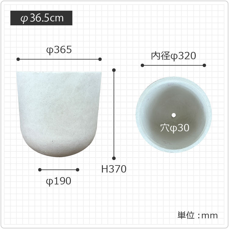 グラスファイバーをベースに成形された軽くて丈夫な植木鉢。長い年月をかけてできた天然石の様な風合いをコンクリートで表現。ぽつぽつと開いた気泡穴が特徴です。