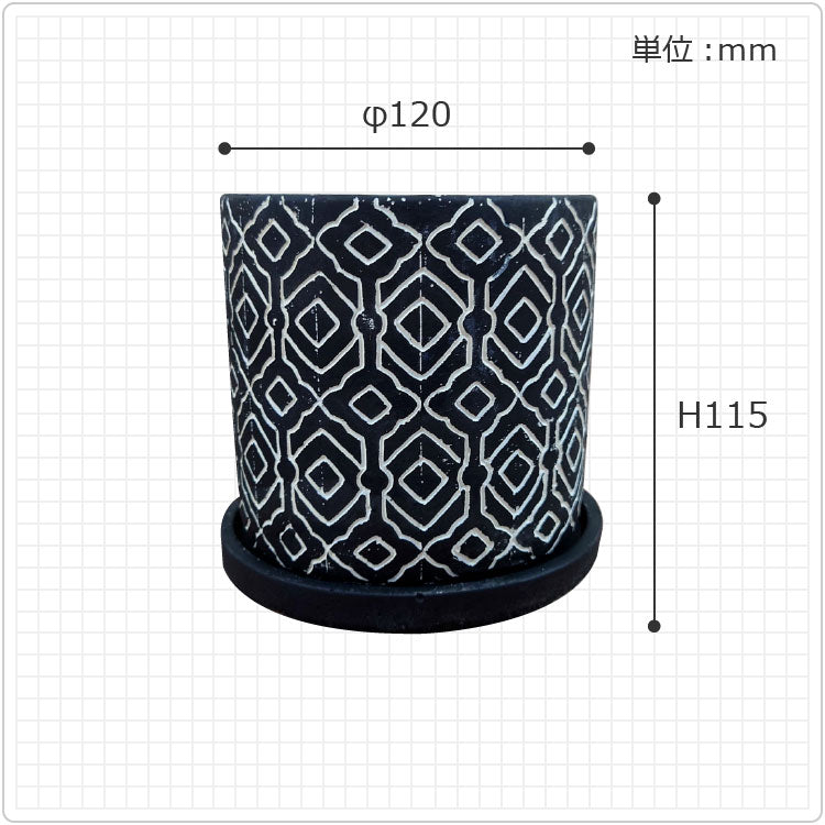 大胆な柄が特徴ですが、植物を入れたらどこに置いても違和感のない、おしゃれな植木鉢です。カラーも3色あり、飾る場所に合わせたお色をお選びいただけます。 多肉ちゃんの寄せ植えはもちろん。エケベリアやハオルチアなどの単品の植え込みも良く合いそうですね。