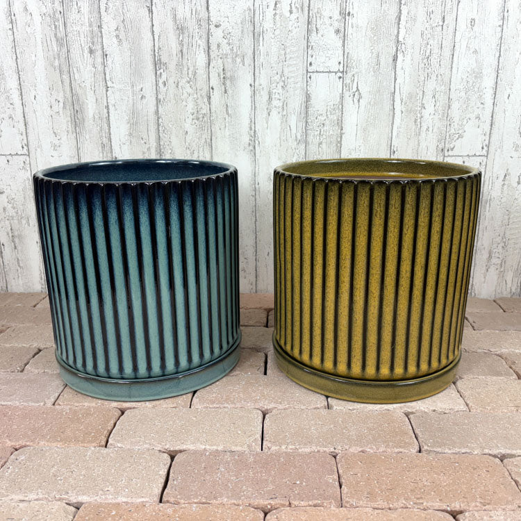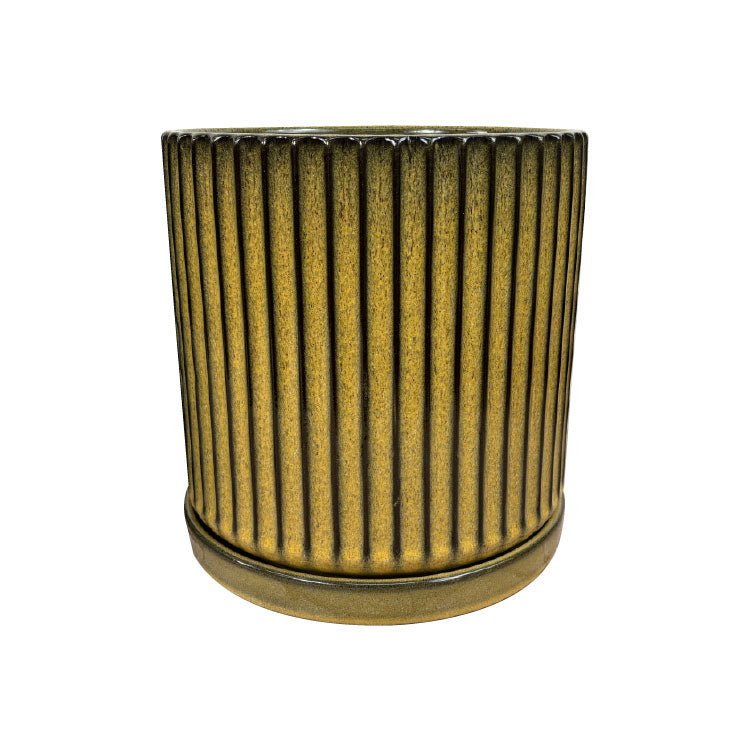 綺麗な縦のストライプ柄がおしゃれな植木鉢。素地と釉の濃淡で美しい模様が浮かび上がり、植物にも負けない存在感でお部屋を彩ってくれるでしょう。