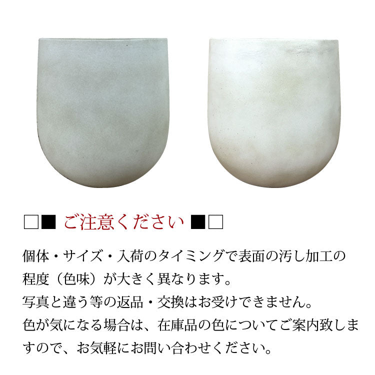 丸みがかったシンプルな大型鉢カバーです。グラスファイバーをベースに成形された軽くて丈夫な植木鉢です。セメント系材料で作られていますがガラス繊維がメッシュ状に張られているため、十分な強度があります。シンボルツリーなどにも最適な商品です。