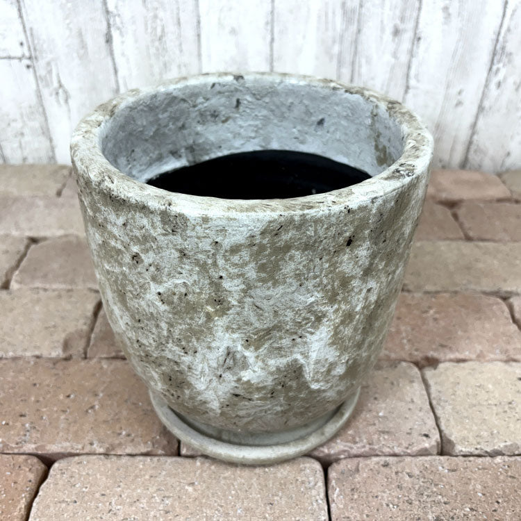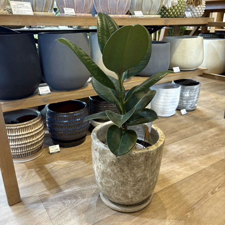 植木鉢らしい定番のデザイン。鉢底穴もあるので植込みにも対応します。 植木鉢の内側および、受け皿は簡易防水となっております。水やりの際はよく水を切ってから受け皿へお戻しください。