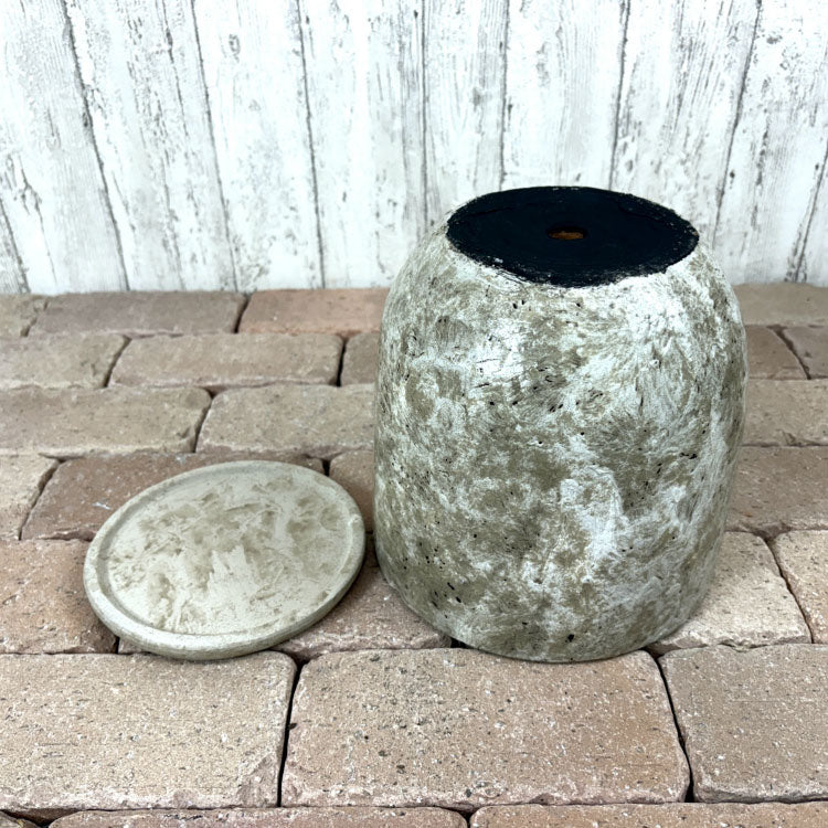 アンティークな装いの陶器鉢。ホワイト、ブラック、グリーンをご用意しました。それぞれ表面の加工が異なっている珍しいタイプ。ホワイトはマットな質感、ブラックは模様入りのやや艶のある質感、グリーンはミックスカラーでサンド加工がされておりザラザラとしています。
