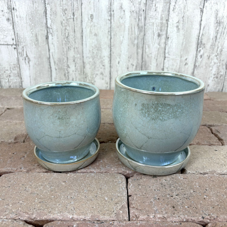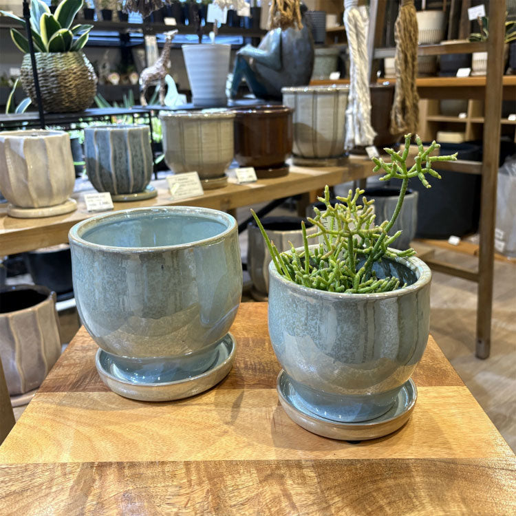 「ブルーパール」の名の通り、淡いブルーやグレーが混ざり合ったような、奥行きのある色合い。どんな色味の葉とも相性が良く、サボテンや多肉植物、観葉植物をより美しく演出します。